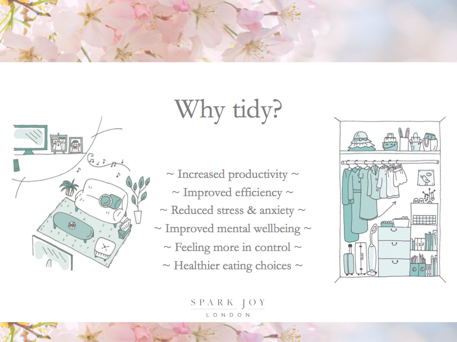Does tidying mean more than just having a clear and ordered environment? The answer is absolutely! Tidying up your home has a positive impact on your life. You may have heard the phrase ‘Tidy home, tidy mind’ and for or anyone who experienced the art of tidying, you know that the after effects are transformative and liberating. Today, I want to share what the benefits are when you take tidying seriously and start to transform your home, one category at a time using the KonMari Method or other traditional decluttering approaches. I want to answer the question: ‘why should I tidy?’ This is something I discuss with clients when they book their initial consultation and we further explore the answers to this question as we complete tidying sessions together. Whenever I present corporate workshops, I devote an entire section of my presentation to exploring the scientifically proven benefits of tidying.